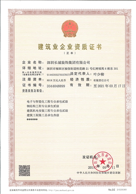 深圳長城裝飾集團有限公司再添建筑工程施工總承包叁級,此次企業(yè)資質的成功申請,不僅是公司發(fā)展史上的里程碑,也為今后公司參與市場競爭和承接更多的工程建設項目提供了更為廣闊的發(fā)展空間和平臺。2018年是公司轉型...