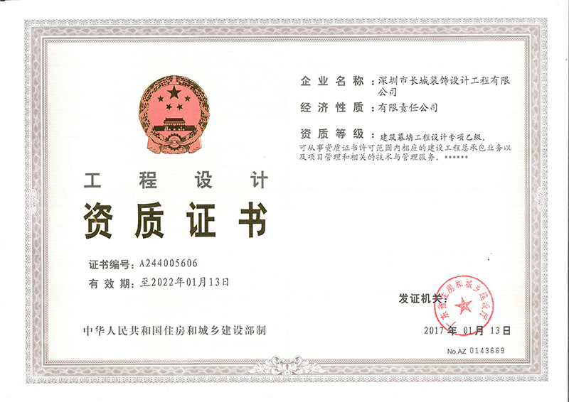 熱烈祝賀我司又添建筑幕墻工程設(shè)計專項乙級資質(zhì)!公司現(xiàn)擁有的資質(zhì):建筑裝飾工程設(shè)計專項甲級、建筑幕墻工程設(shè)計專項乙級、建筑裝修裝飾工程專業(yè)承包壹級、建筑幕墻工程專業(yè)承包壹級、展覽工...