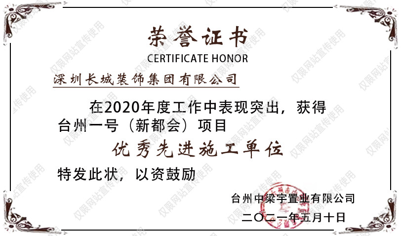 動(dòng)力 | 長(zhǎng)城裝飾集團(tuán)榮獲“臺(tái)州一號(hào)項(xiàng)目?jī)?yōu)秀先進(jìn)施工單位”榮譽(yù)稱號(hào)