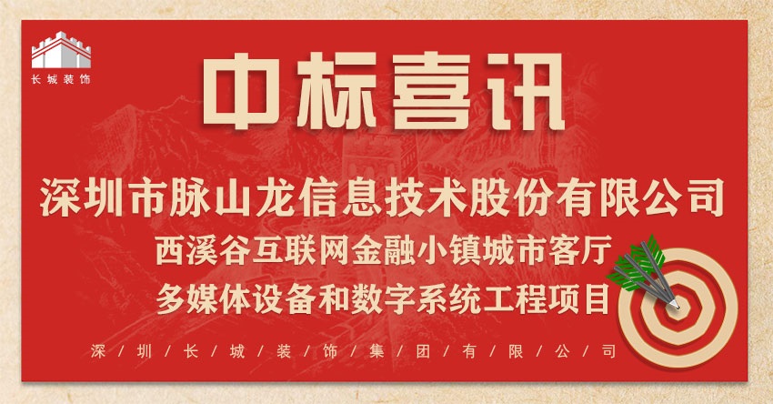 恭喜我司中標:深圳市脈山龍信息技術股份有限公司-西溪谷互聯(lián)網(wǎng)金融小鎮(zhèn)城市客廳多媒體設備和數(shù)字系統(tǒng)工程項目