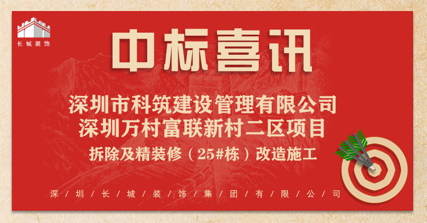 恭喜我司中標:深圳市科筑建設管理有限公司-深圳萬村富聯(lián)新村二區(qū)項目拆除及精裝修(25#棟)改造施工!