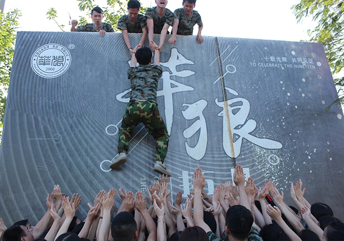 參訓員工分成四個團隊,在協(xié)作與激情中依次完成顛鼓擊球、激情99秒、賽龍舟、沙場點兵、高空斷橋、扎筏泅渡等多個項目,最后共同挑戰(zhàn)最為艱難的畢業(yè)墻。訓練中,參訓員工忘記職務、忘記年齡、忘記性別,通過團隊的組建、展示、訓練、合作與挑戰(zhàn),真正融入在一起,共同為打造卓越團隊而拼搏,不拋棄任何一個隊友、不放棄任何一次成功的機會,最后憑借勇氣、智慧、團結(jié)、奉獻獲得了成功的喜悅。