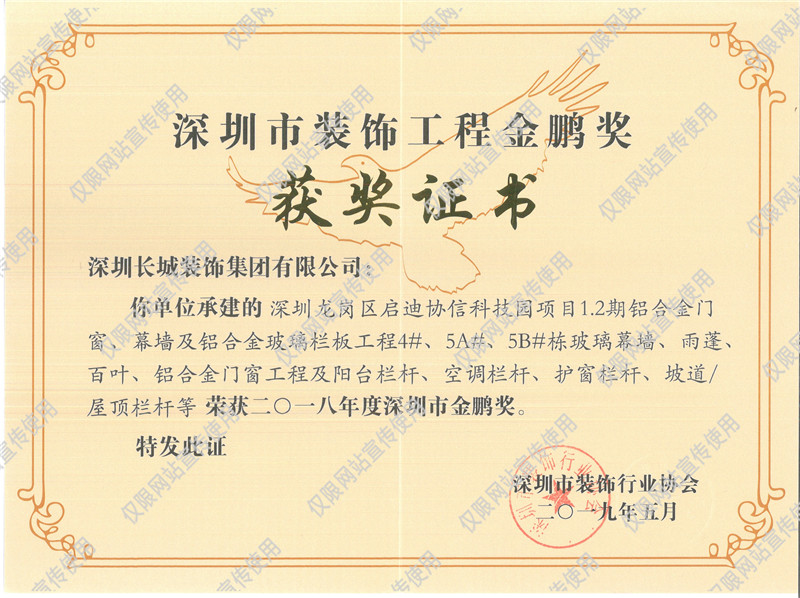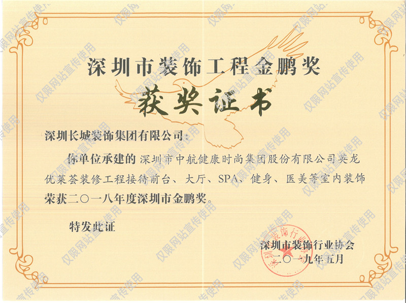 今日,我司收到來(lái)自于深圳市裝飾行業(yè)協(xié)會(huì)頒發(fā)的 “2018年度深圳市裝飾工程金鵬獎(jiǎng)”的獲獎(jiǎng)證書,兩項(xiàng)目評(píng)選結(jié)果已于2019年4月28日揭曉。