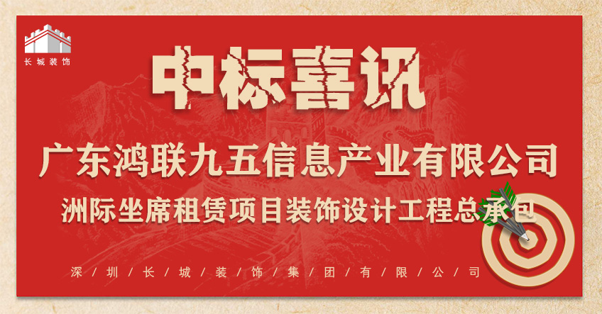 恭喜我司中標:廣東鴻聯(lián)九五信息產業(yè)有限公司-洲際坐席租賃項目裝飾設計工程總承包