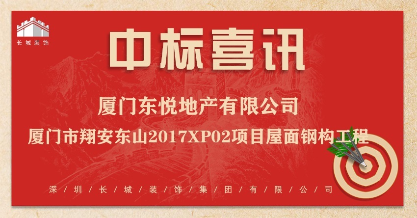 恭喜我司中標(biāo): 廈門東悅地產(chǎn)有限公司-廈門市翔安東山2017XP02項目屋面鋼構(gòu)工程