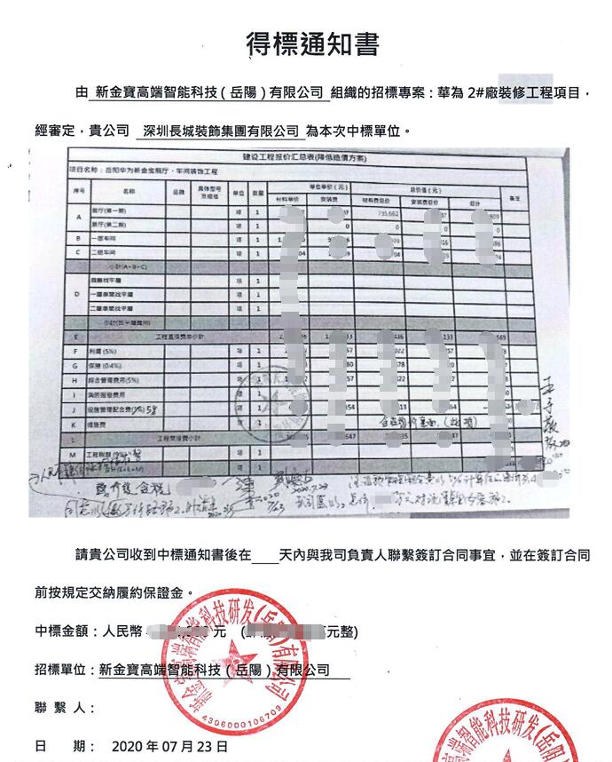 2020-7-312020年7月23日,深圳長城裝飾集團(tuán)有限公司憑借豐富的施工經(jīng)驗、雄厚的技術(shù)資金實力、良好的商業(yè)信譽中標(biāo)“湖南城陵磯華為新金寶高端制造基地2#廠裝修工程”項目,這是繼2019年中標(biāo)并圓滿完成“泰金寶光電(岳陽)有限公司的年產(chǎn)1300萬臺噴墨打印機”項目后又一佳績。