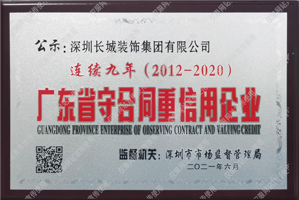 近日,2020年度“廣東省守合同重信用企業(yè)”評選結(jié)果出爐,長城被授予“連續(xù)九年(2011-2020)廣東省守合同重信用企業(yè)”。