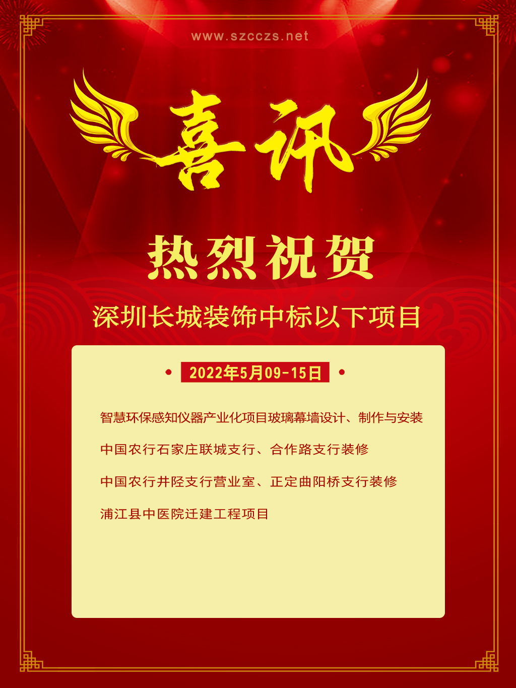 中標喜訊 | 5月09~15日長城裝飾集團工程中標項目