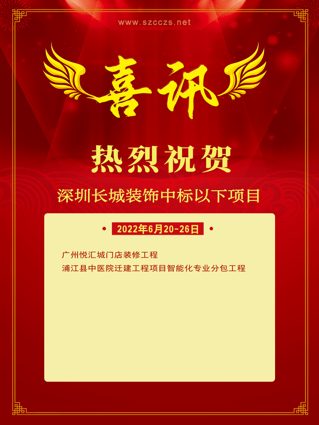 中標(biāo)喜訊 | 6月20~26日長城裝飾集團(tuán)工程中標(biāo)項(xiàng)目