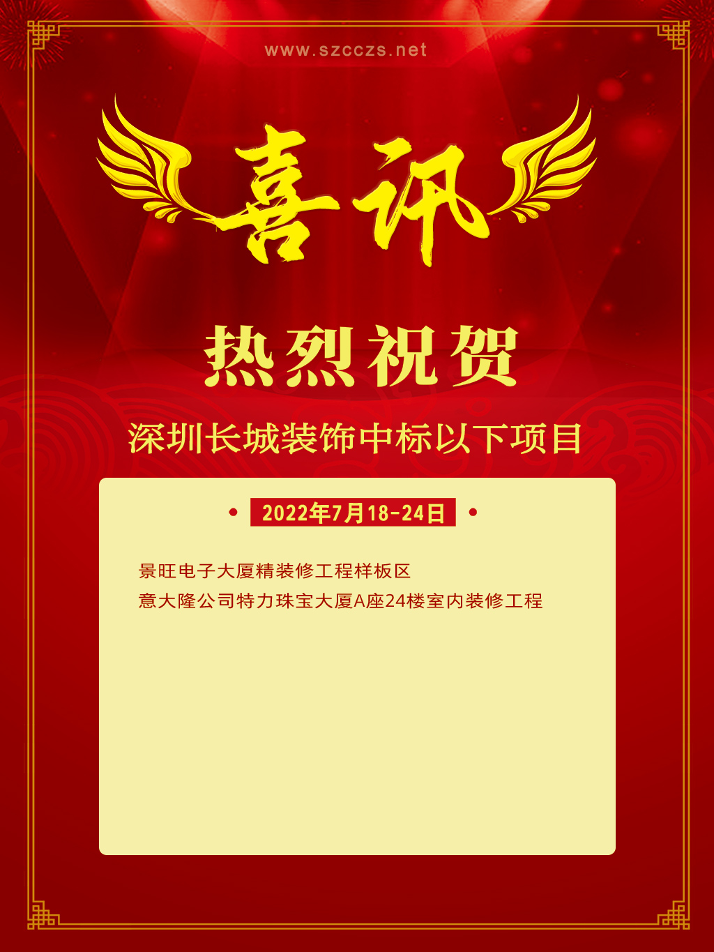 中標(biāo)喜訊 | 7月18~24日長城裝飾集團(tuán)工程中標(biāo)項目
