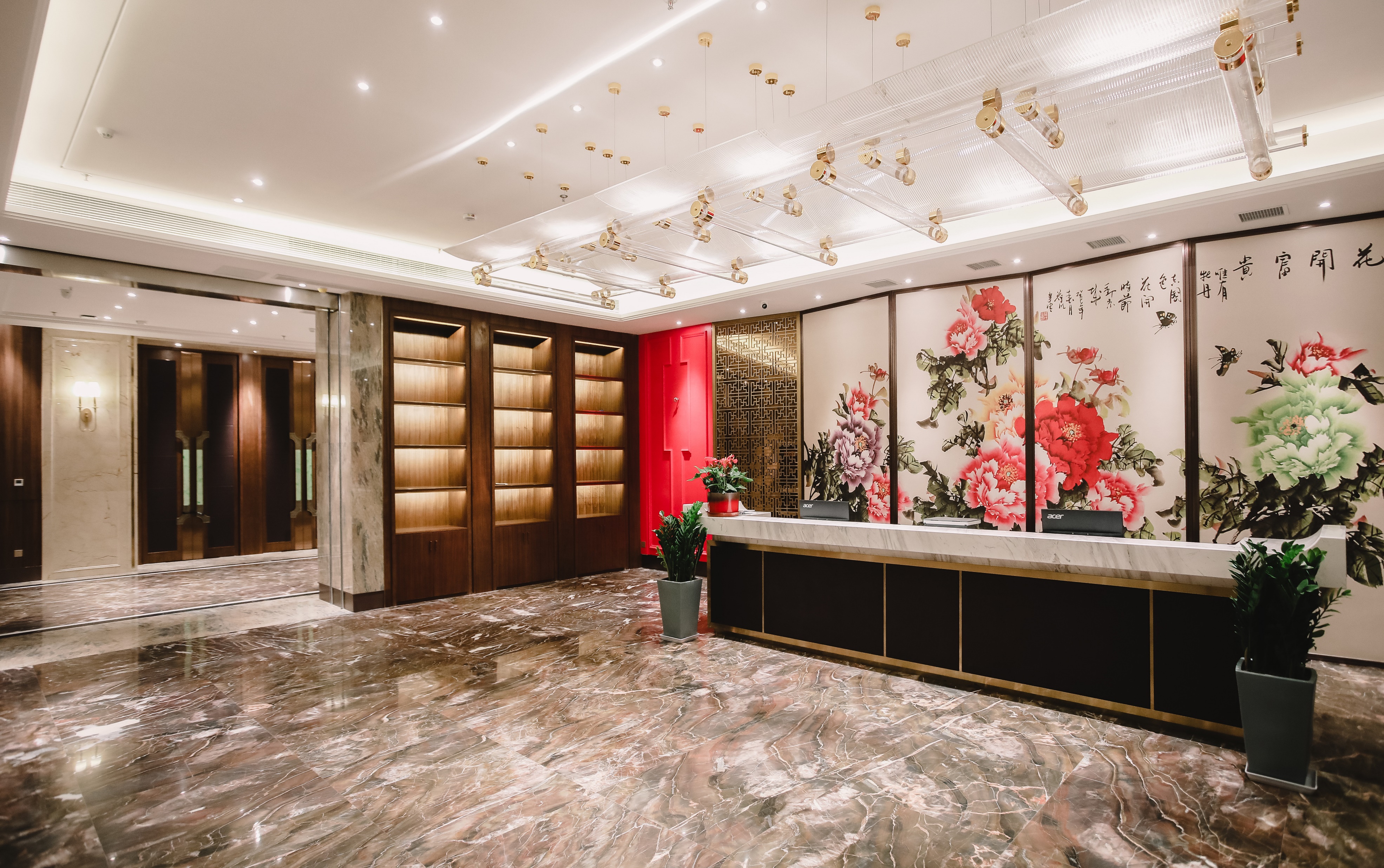 銀都商業(yè)廣場5#商業(yè)樓(5層)改造及裝修工程所在建筑的總建筑面積168000平方米、結(jié)構(gòu)型式框架結(jié)構(gòu)、防火等級一級、建筑性質(zhì)為商業(yè)、地處昆山南部中心。建設(shè)單位為昆山市裕大房地產(chǎn)有限公司。該項目是昆山張浦本地最大的酒店,擁有600余人大宴會廳2個,小宴會廳140人及80人共2個,20間大小包廂。整體風(fēng)格為新中式,大膽采用多種色調(diào)、結(jié)合蘇州當(dāng)?shù)亟ㄖ厣霸?、體現(xiàn)中國江南水鄉(xiāng)傳統(tǒng)文化,大空間氣勢恢弘,天花及墻面造型復(fù)雜,石材大量應(yīng)用整體顏色紋路統(tǒng)一、無明顯色差,木飾面加工安裝嚴(yán)密,不銹鋼造型加工及安裝精度高。宴會廳天花造型新穎別致,體現(xiàn)古典和現(xiàn)代完美結(jié)合。