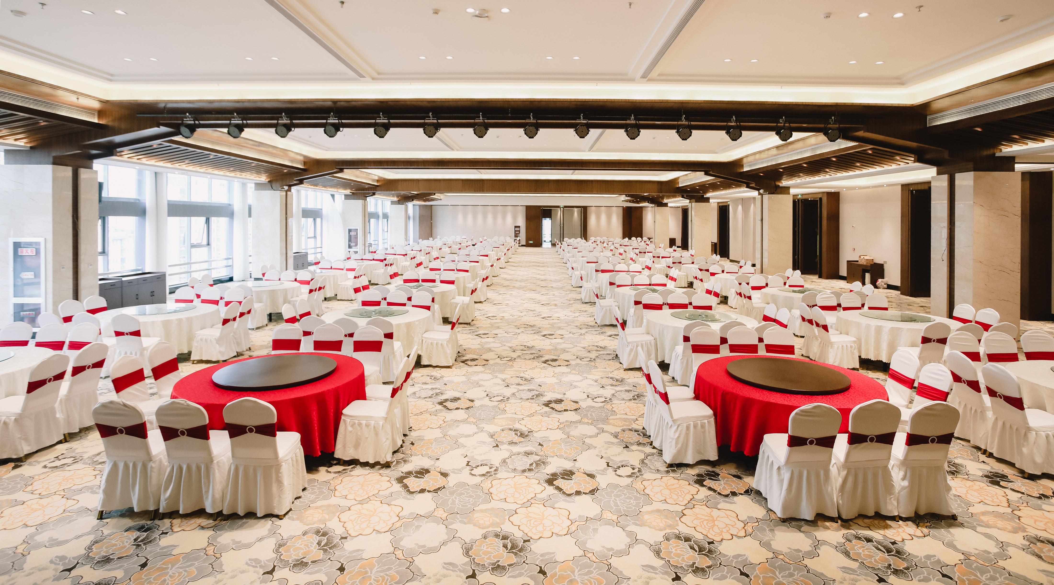 亮點介紹:超大空間,大宴會廳頂為中式復(fù)合木飾面藻井符合消防要求,同時造型新穎具有古典風(fēng)格。