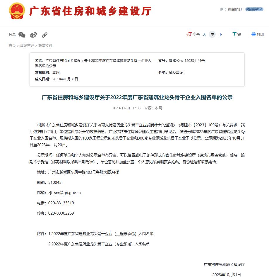 2022年度廣東省建筑業(yè)龍頭骨干企業(yè)