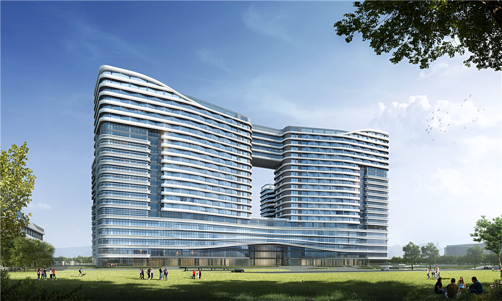 建筑幕墻方案設(shè)計(jì)猶如一只羽翼舒展的蝴蝶,身姿婀娜地落在茅洲河畔,振翅欲飛。塔樓連為一個(gè)整體,建筑立面以橫向波浪線條為主,柔化形體,呼應(yīng)茅洲河的涓涓細(xì)流,科技感與自然環(huán)境有機(jī)融合,給人以優(yōu)雅內(nèi)斂,生生不息,充滿希望的建筑體驗(yàn)。
