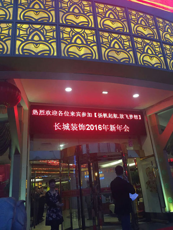 董事長葉曉晨在致辭中感謝社會各界領(lǐng)導(dǎo)的關(guān)懷、各位客戶的信任、理解和支持,也感謝全體員工的辛勤付出!他也表示長城裝飾將邁開步伐,奔向更加輝煌的2016年。他祝大家新春快樂,工作順利,平安健康,吉祥如意。