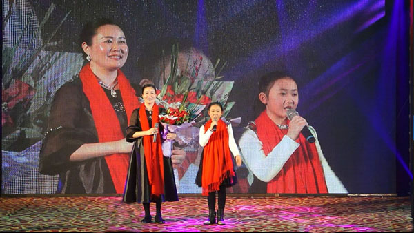 龔建華副總經(jīng)理和其女兒合唱《五星紅旗》