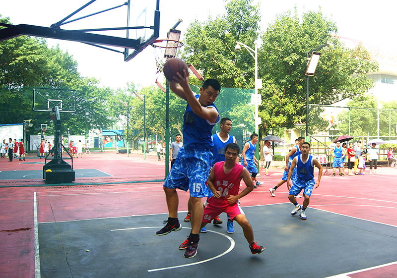 兩隊(duì)為現(xiàn)場(chǎng)觀眾奉獻(xiàn)了一場(chǎng)精彩的比賽。比賽緊張激烈的進(jìn)行著,我方球員狀態(tài)較佳每次進(jìn)攻都能得分,但華加日的隊(duì)員們也不氣餒。雙方隊(duì)員頻頻強(qiáng)攻得分,場(chǎng)面異常火爆。每個(gè)隊(duì)員都在積極跑位,為隊(duì)友作掩護(hù),還時(shí)不時(shí)有精妙的傳球、漂亮的配合和精彩的上籃。比賽中也有意外碰撞跌倒發(fā)生,可是隊(duì)員們沒(méi)有因此影響比賽情緒,相互之間拍著肩膀互相安慰一下接著再來(lái)。