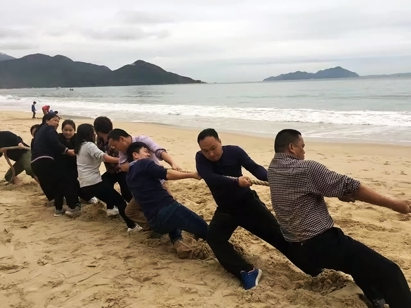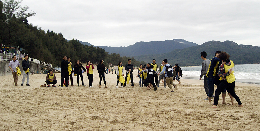 第二站是擁有美麗水域、海岸線蜿蜒的金沙灘,在這里公司員工舉行了登情人島、“撕名牌大戰(zhàn)”、“真人CS”以及撥河比賽、篝火燒烤等精彩紛呈的拓展活動,在比賽中各小組參賽隊員充分展示出了相互間的團隊協(xié)作精神,增進(jìn)了彼此的情感。